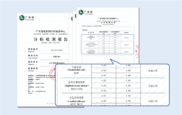 此次安全性檢測(cè)由廣東省微生物分析檢測(cè)中心檢測(cè)并出具報(bào)告。